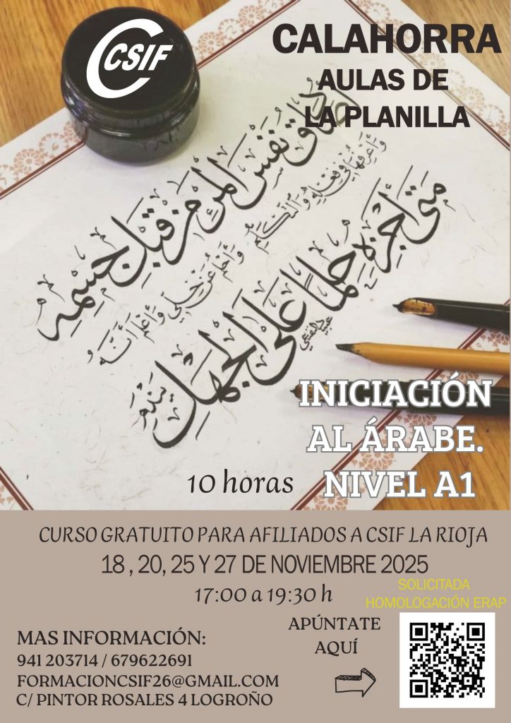 Gratuito para afiliados a CSIF La Rioja. AFÍLIATE Y PODRÁS PARTICIPAR 2025 NOVIEMBRE INICIACIÓN AL ÁRABE. CALAHORRA HOJA DE AFILIACIÓN HOJA DE INSCRIPCIÓN OCTUBRE LENGUAJE INCLUSIVO NO SEXISTA HOJA DE AFILIACIÓN HOJA DE INSCRIPCIÓN MAS INFORMACIÓN JUNIO DERMOESTÉTICA Y CUIDADO DE LA PIEL HOJA DE AFILIACIÓN HOJA DE INSCRIPCIÓN MAS INFORMACIÓN MAYO CURSO INTENSIVO. EXTRANJERÍA Y PROTECCIÓN INTERNACIONAL HOJA DE AFILIACIÓN HOJA DE INSCRIPCIÓN INICIACIÓN AL ÁRABE HOJA DE AFILIACIÓN HOJA DE INSCRIPCIÓN ABRIL CONOCIENDO EL LAUNCHBALL, DEL AULA AL PATIO HOJA DE AFILIACIÓN HOJA DE INSCRIPCIÓN CURSOS FINALIZADOS